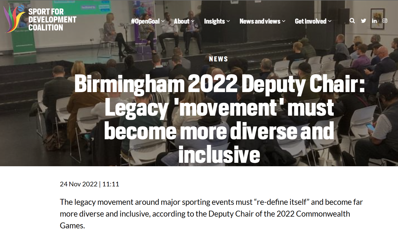 The organisers of the Town Hall did a stellar job of bringing together an eclectic group of contributors and attracted a diverse audience. A full rundown of key takeaways from the event was published by the SfDC Birmingham 2022 Deputy Chair: Legacy ‘movement’ must become more diverse and inclusive | Sport for development coalition, plus generously recorded and shared the event via YouTube https://m.youtube.com/watch?v=UsKR3jpVx-E