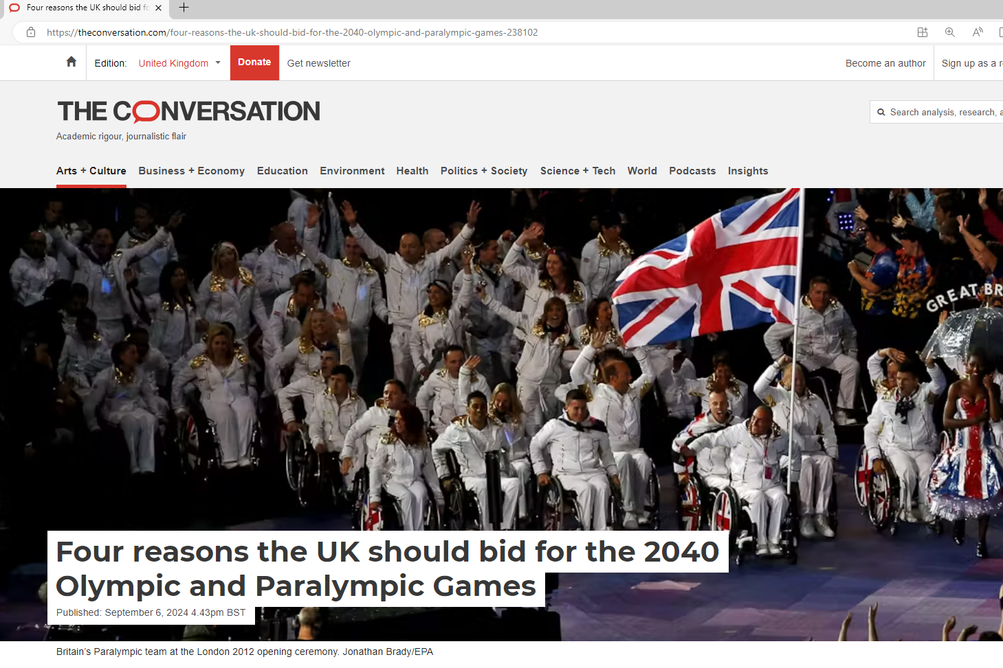 Full Conversation piece here: https://theconversation.com/four-reasons-the-uk-should-bid-for-the-2040-olympic-and-paralympic-games-238102